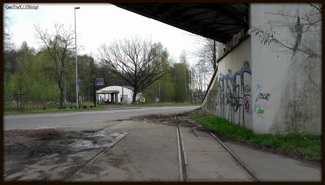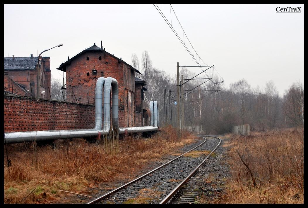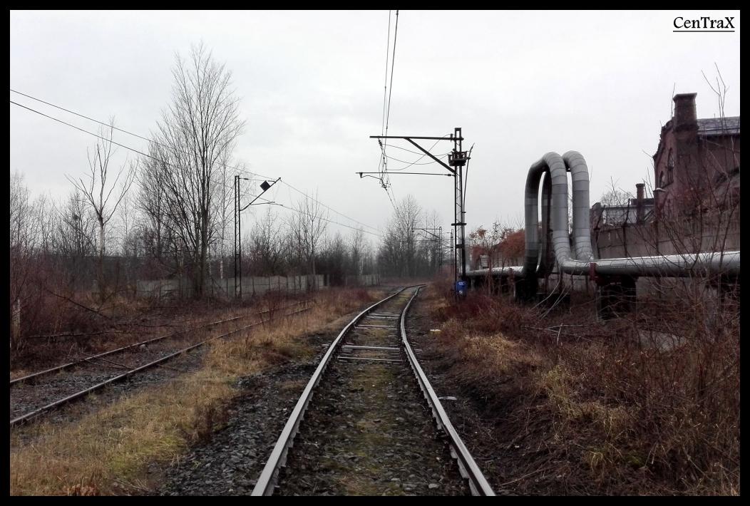 Tu był początek toru wyciągowego Huty 1 maja, wciśnięty pomiędzy zabudowę gliwickiego Trójkąta Bermudzkiego/Cecylii. Miejsce klimatyczne ale lepiej nie bujać się tu wieczorami samotnie. Widok w kierunku zachodnim (pozostałości zakładu, perony).