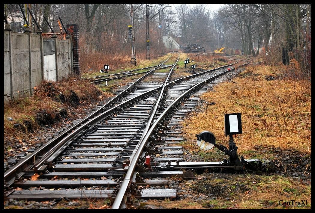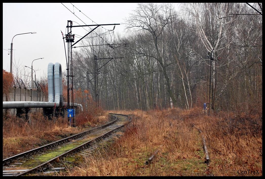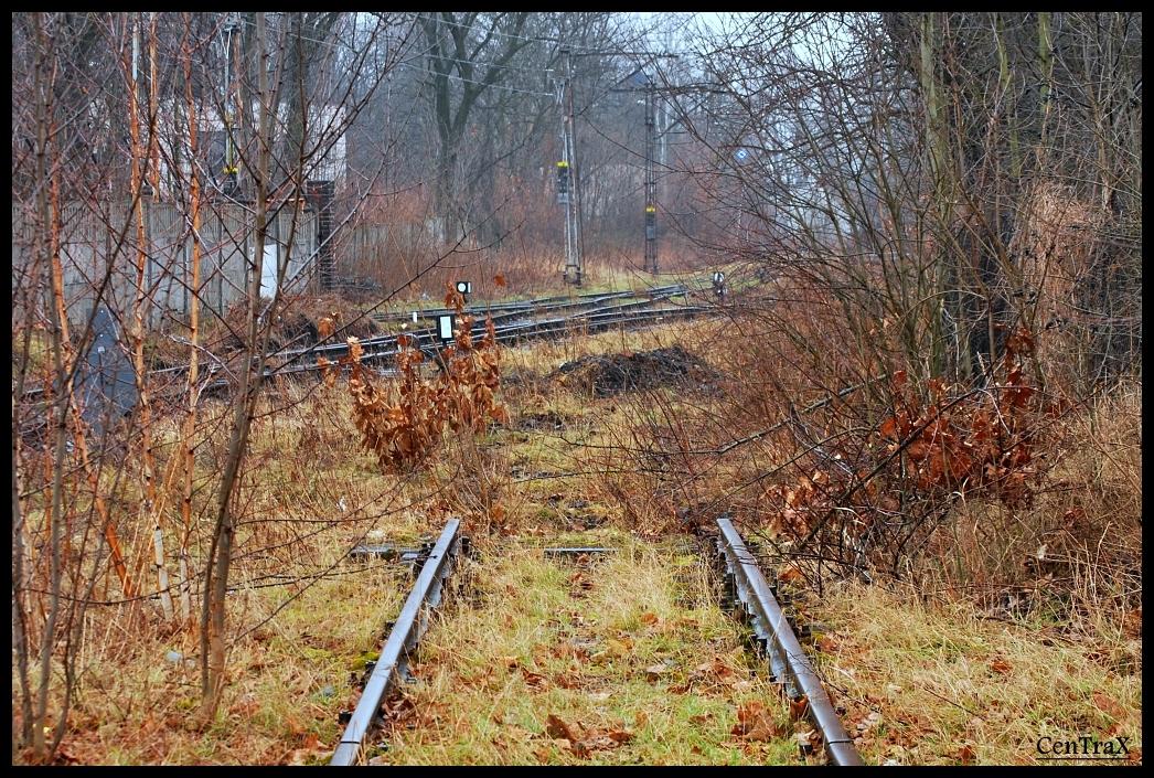 Pozostałość po dwutorowym zelektryfikowanym szlaku zlikwidowanej linii do Zabrza. Po lewej resztki toru który ostatnio jest sukcesywnie rozbierany. Zabudowania po prawej to stare ZNLE. Widok w stronę Gliwic.