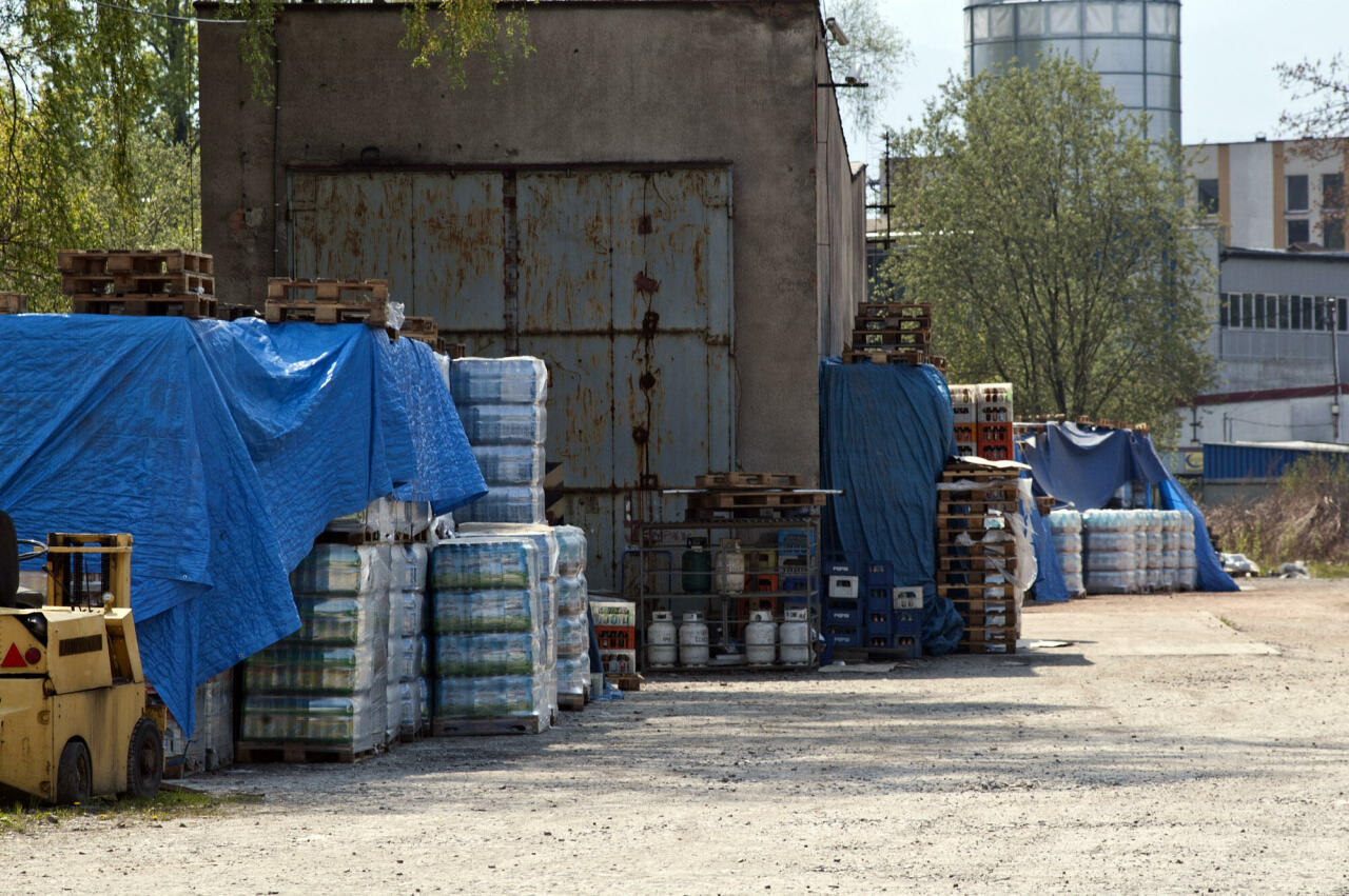 Lokomotywownia na dawnej bocznicy Befa. Obecnie to prowizoryczny magazyn lokalnej firmy.