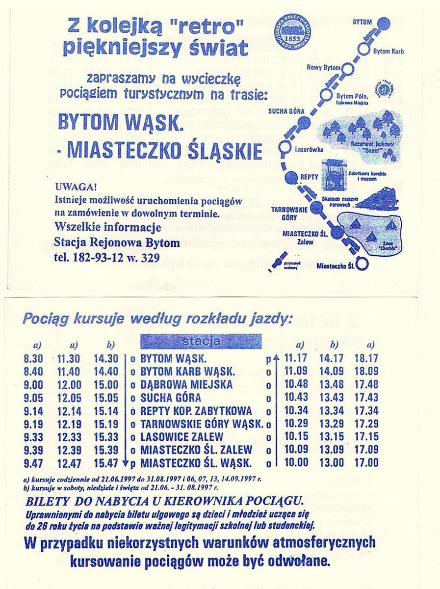 Ulotka z rozkładem jazdy z 1997 r