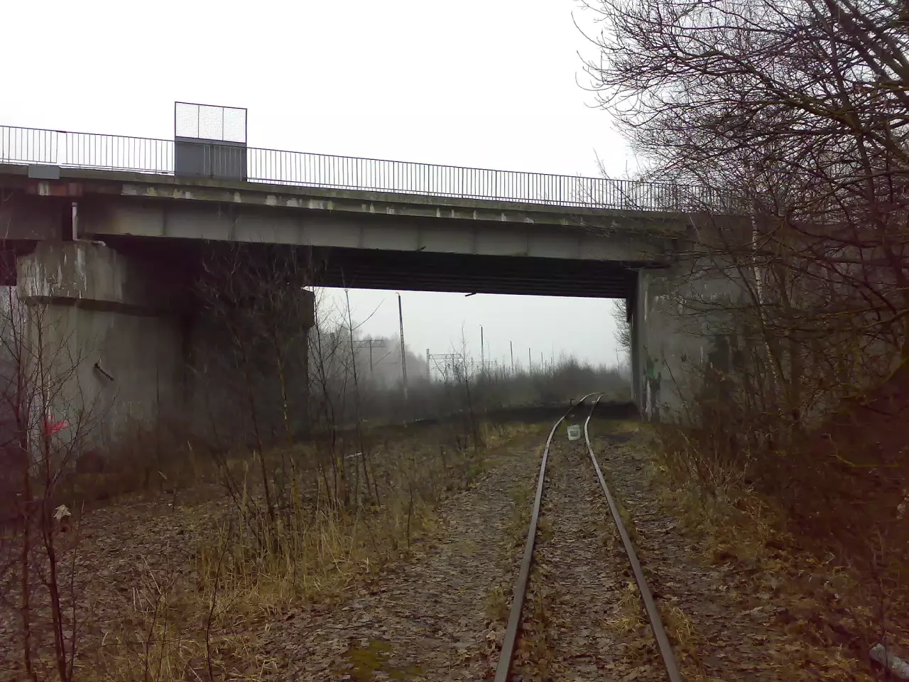 Bytom, na zachód od ulicy Celnej. Po lewej na nasypie jest to najprawdopodobniej bocznica do kopalni Centrum.