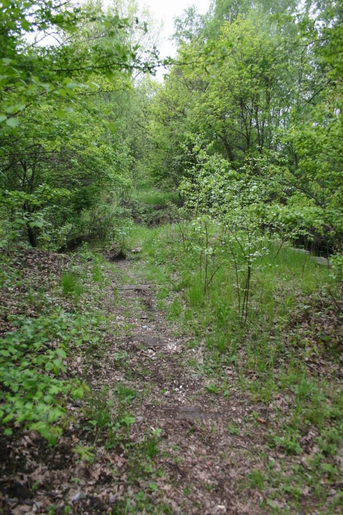 Ścieżka po dawnej linii wąskotorowej. Gdyby nie GPS i stary Messtichsblatt, to bym nie znalazł jej w terenie. Czasem trafia się jeszcze jakiś podkład pod butami.