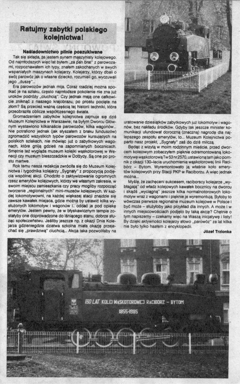 Artykuł z Młodego Technika nr 3-1986 w temacie linii wąskotorowej Racibórz-Bytom.