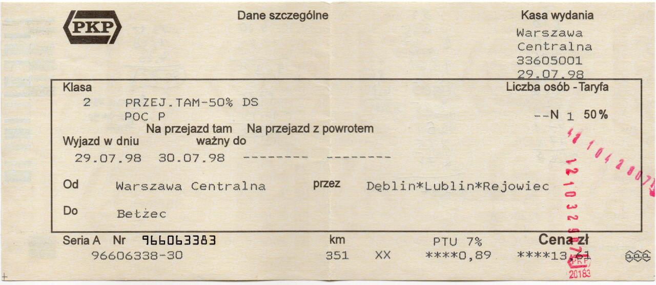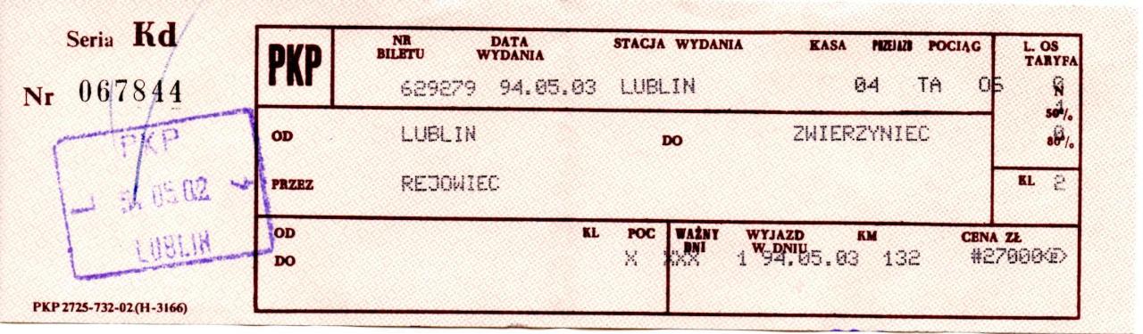 Skan biletu z wakacyjnej wycieczki.