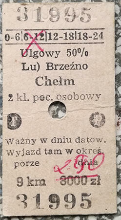 Bilet kartonikowy ze stacji Brzeźno.