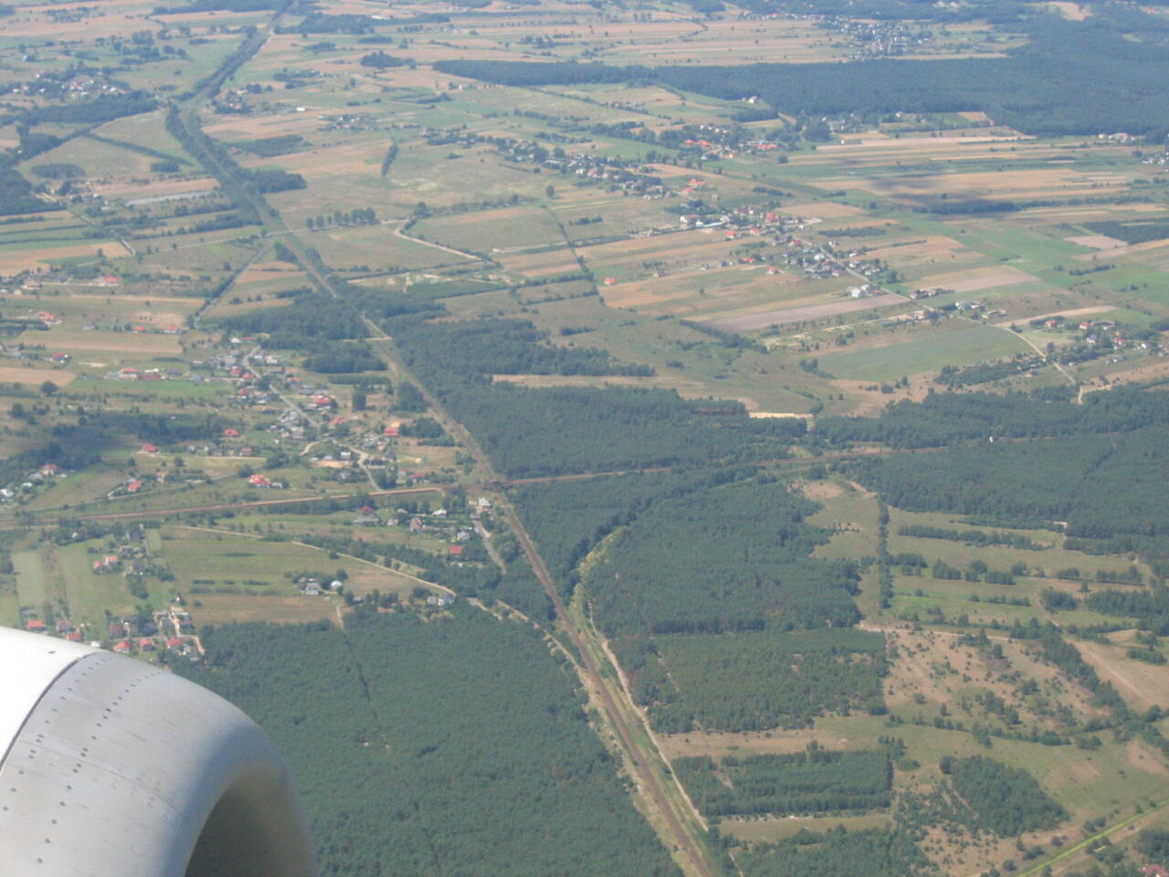 Węzeł w Czachówku - widok z samolotu od strony Warszawy. Na wprost Warka/Radom, w lewo Góra Kalwaria/Pilawa, w prawo Tarczyn/Skierniewice.