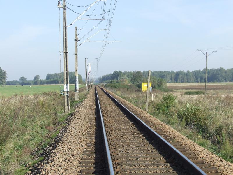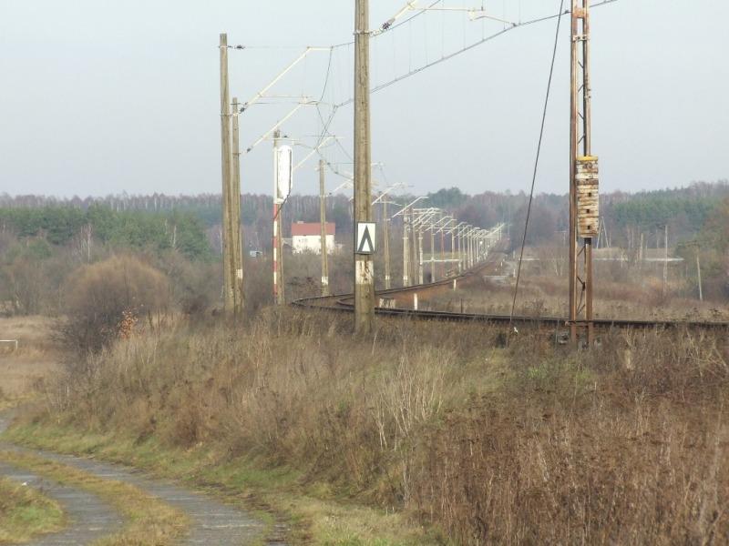 Jasienica - Dąbrowica. Widok w kierunku Pilawy, tuż za posterunkiem odgałęźnym Jasienica.