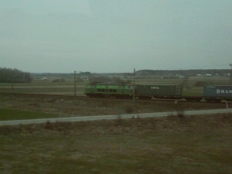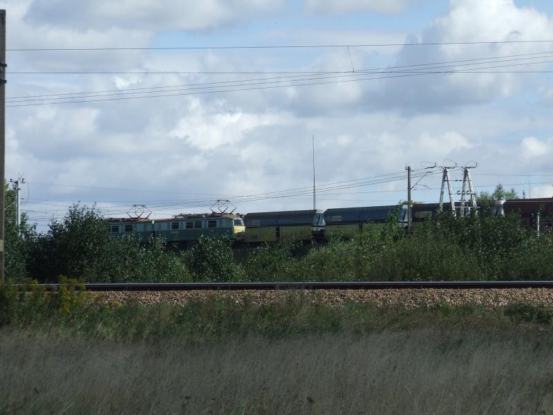 Pociąg prowadzony przez lok. CTL przejeżdża nad linia terespolską.
