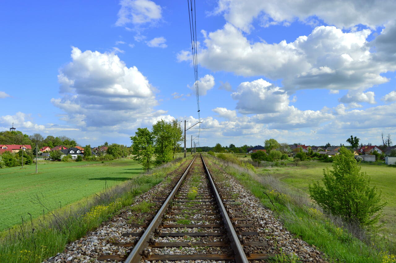 Pociąg towarowy zmierzający z kierunku Pilawy minął właśnie wiadukt drogowy w okolicy miejscowości Lubice.