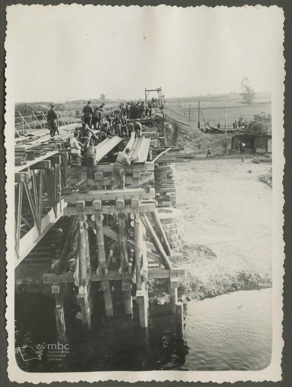 Budowa mostu na Świdrze koło stacji Sufczyn przez oddział II Batalionu Mostów Kolejowych; zdjęcie ze zbiorów Mazowieckiej Biblioteki Cyfrowej.