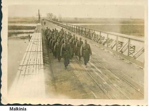 Niemcy na moście kolejowo - drogowym na Bugu między Treblinką a Małkinią w pierwotnej wersji (grube poręcze).