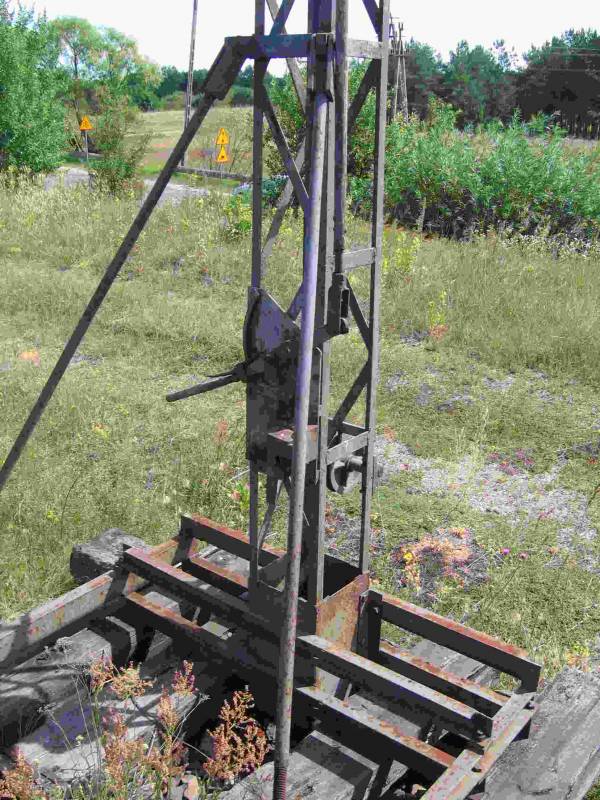 Most na Bugu. Semafor karzełkowy przy wjeździe na most z Treblinki. Po pędniach dawno już ślad zaginął, ale ramię błyszczy w słońcu jak nowe.