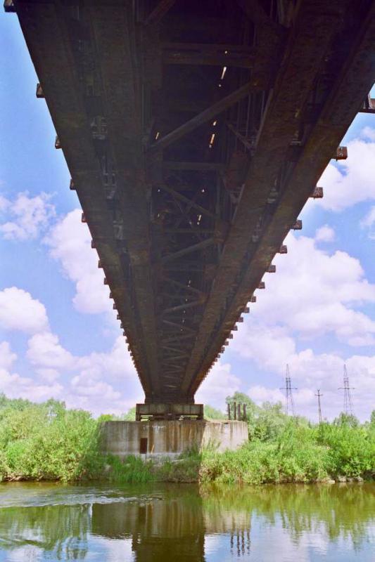 Most na Bugu. Widok na most kolejowo-drogowy pod Małkinią. Widok w kier. Siedlec.