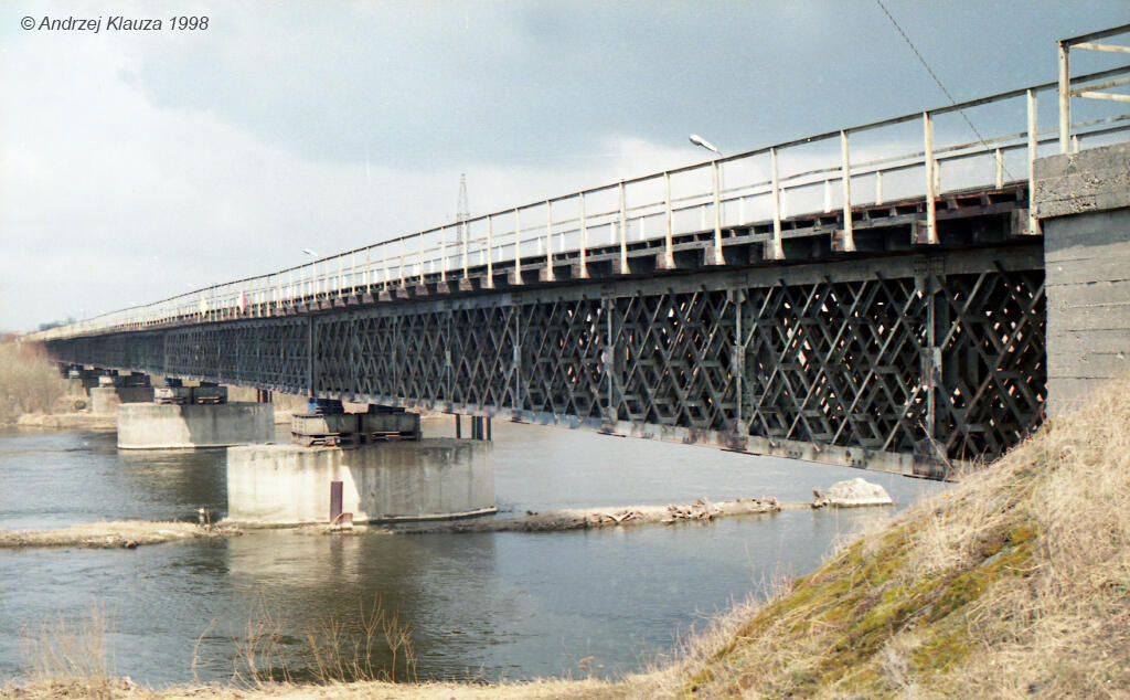 Widok od strony Małkini na nieistniejący już most kolejowo-drogowy na Bugu;