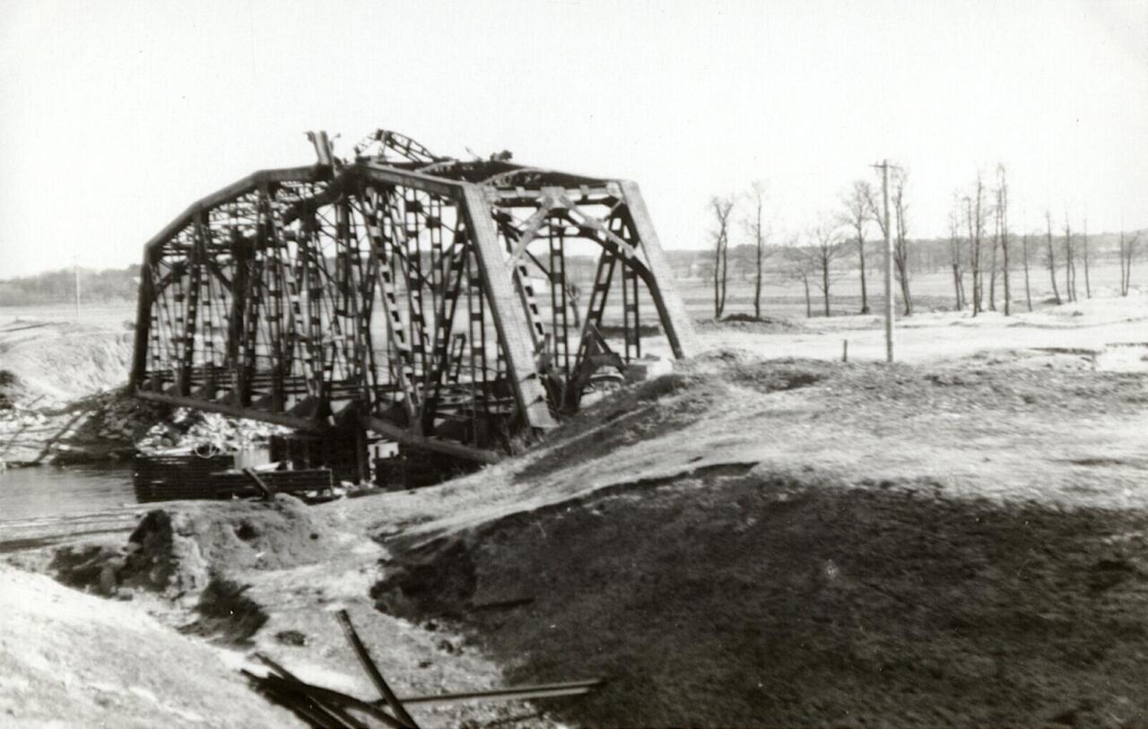 Zniszczony po wojnie most na rzece Brok koło wsi Niegowiec - Zdjęcie z grupy FB Stare zdjęcia - Ostrów Mazowiecka i okolice.