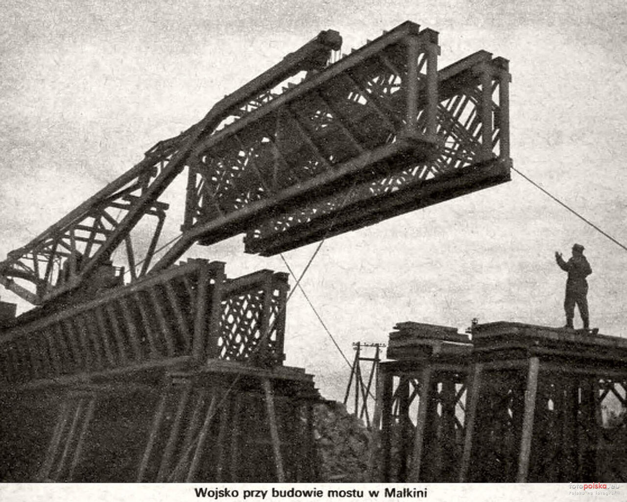 Budowa mostu kolejowo - drogowego nad Bugiem na odcinku z Małkini do Treblinki. Zdjęcie z grupy FB Stare zdjęcia - Ostrów Mazowiecka i okolice.