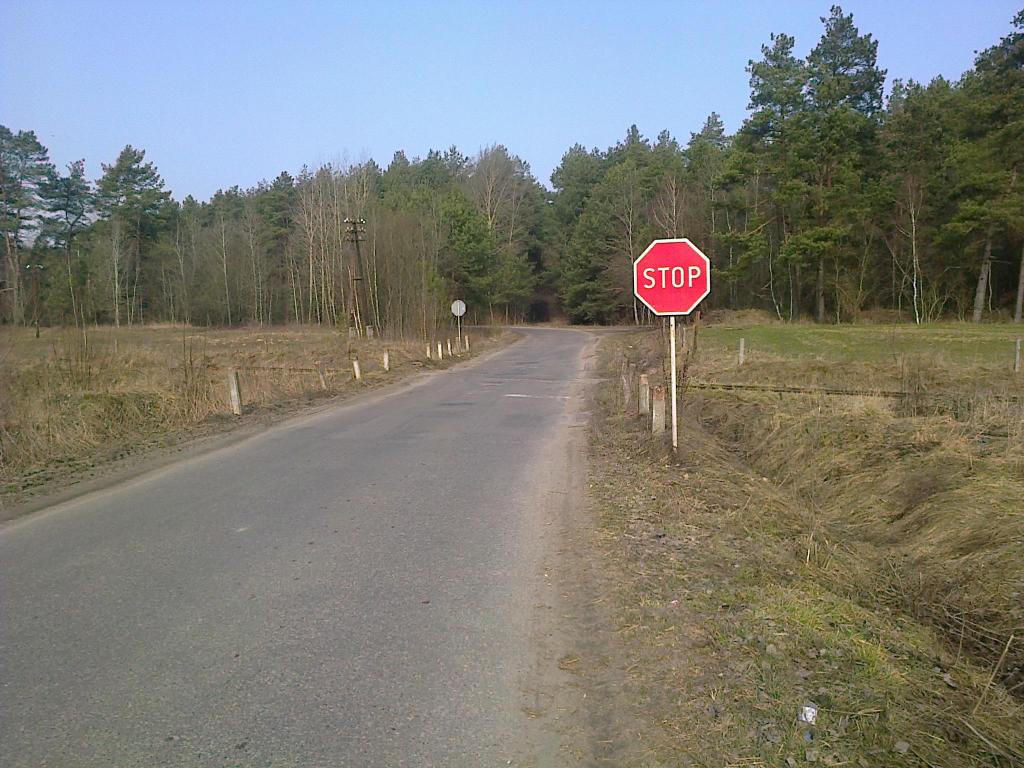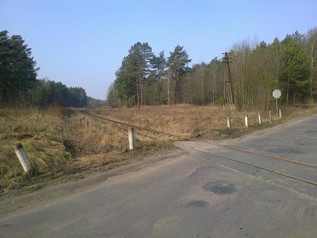 Przejazd drogowy z drogą krajową nr 8. w okolicach przystanku Kołaki. Widok w stronę Ostrołęki.