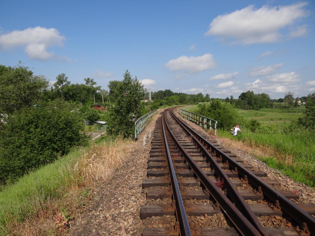 Wiadukt w ciągu ulicy Kościuszki. W lewo początek linii, Olecko, w prawo Suwałki. 2,2 km.