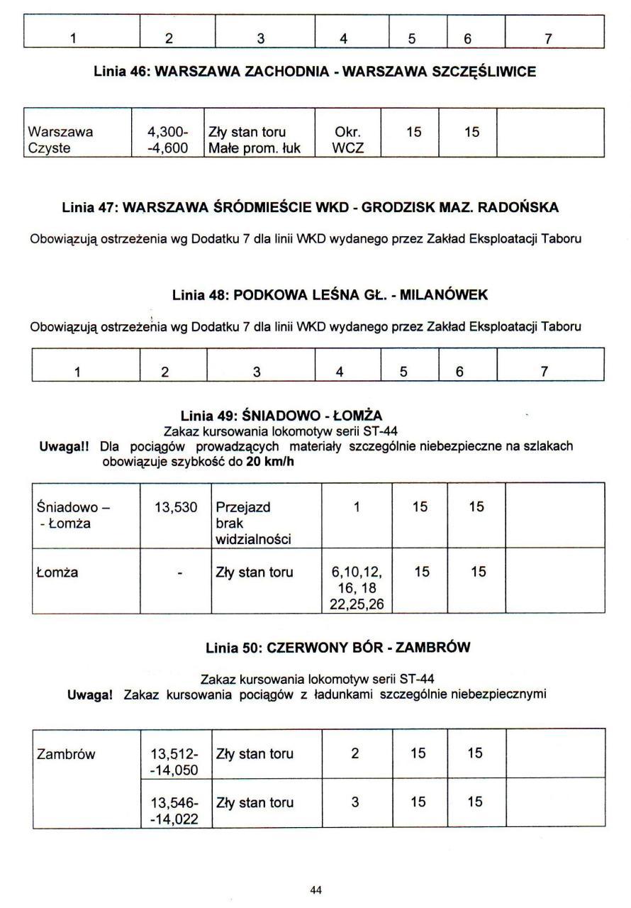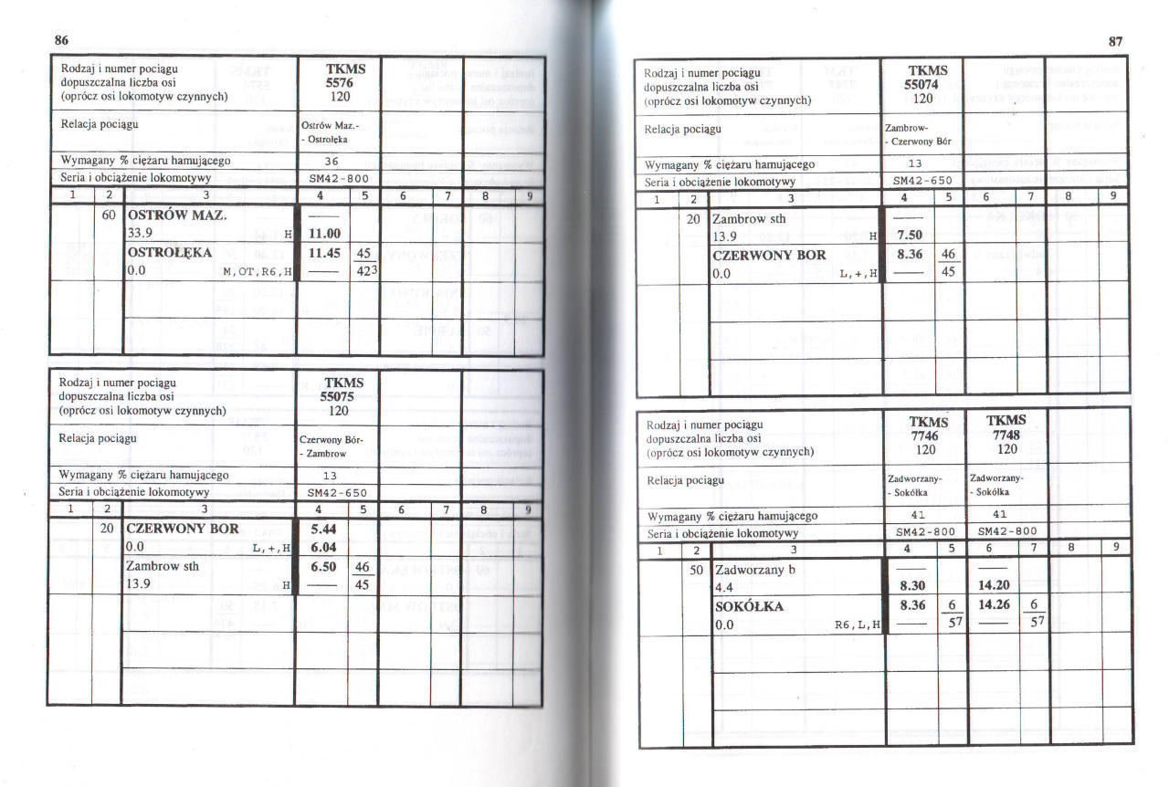 Wyciąg ze służbowego rozkładu jazdy pociągów towarowych ważnego od dn 02.06.1996.