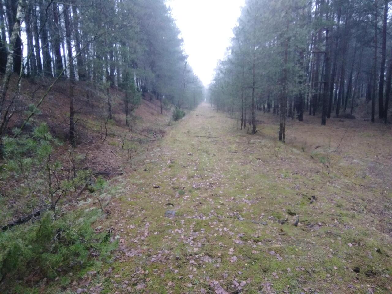 Gdzieś po środku linii Czerwony Bór - Zambrów. I weź tu bądź madry, gdzie jest tor? Podobno jest pod trawą przed i za drogą. Droga Białystok - Warszawa dokładnie podzieliła linię na dwie części. Linia zamknięta dla ruchu i całkowicie nieprzejezdna, do likwidacji. Ech, gdzież te czasy, że można było zaopatrzyć się jadąc drezyną w mąkę u Wysockiego?