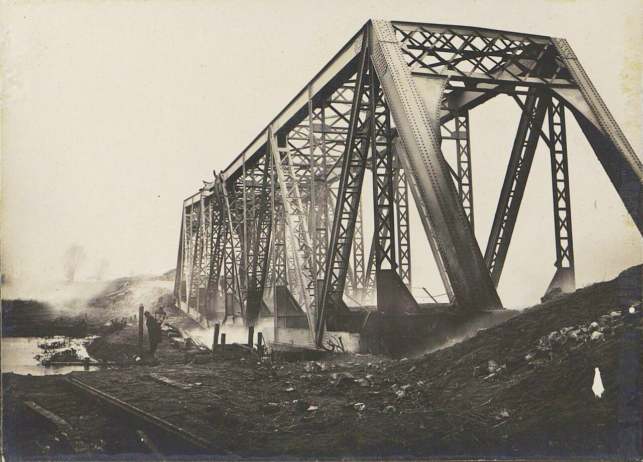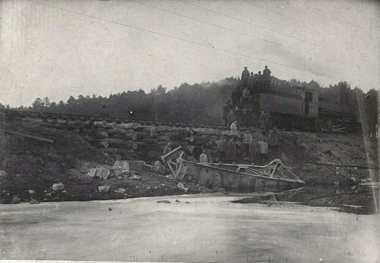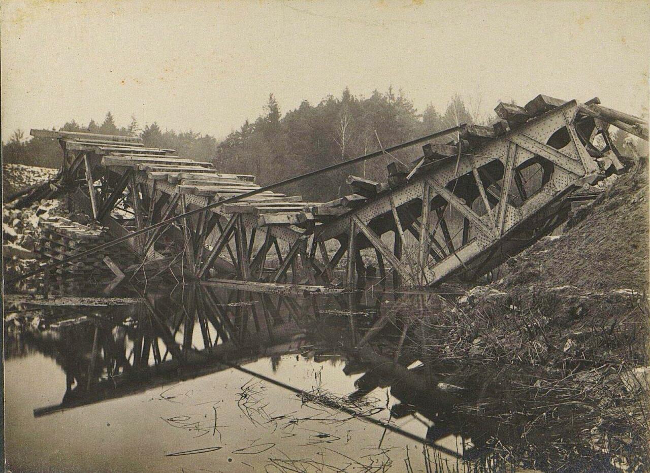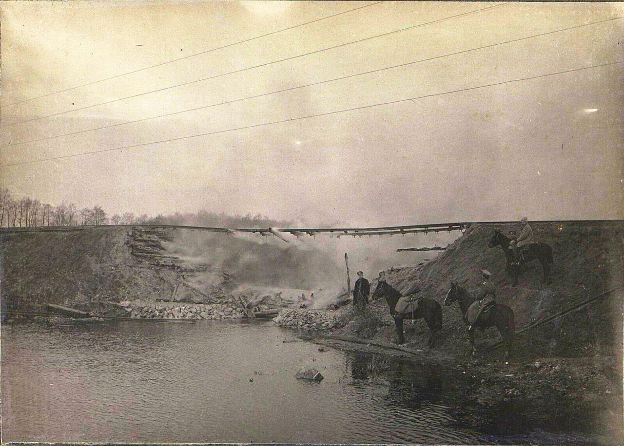Zniszczony most na 44 wiorście linii (zapewne koło Julianki).