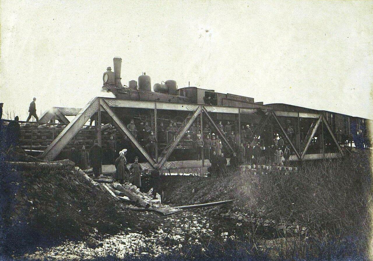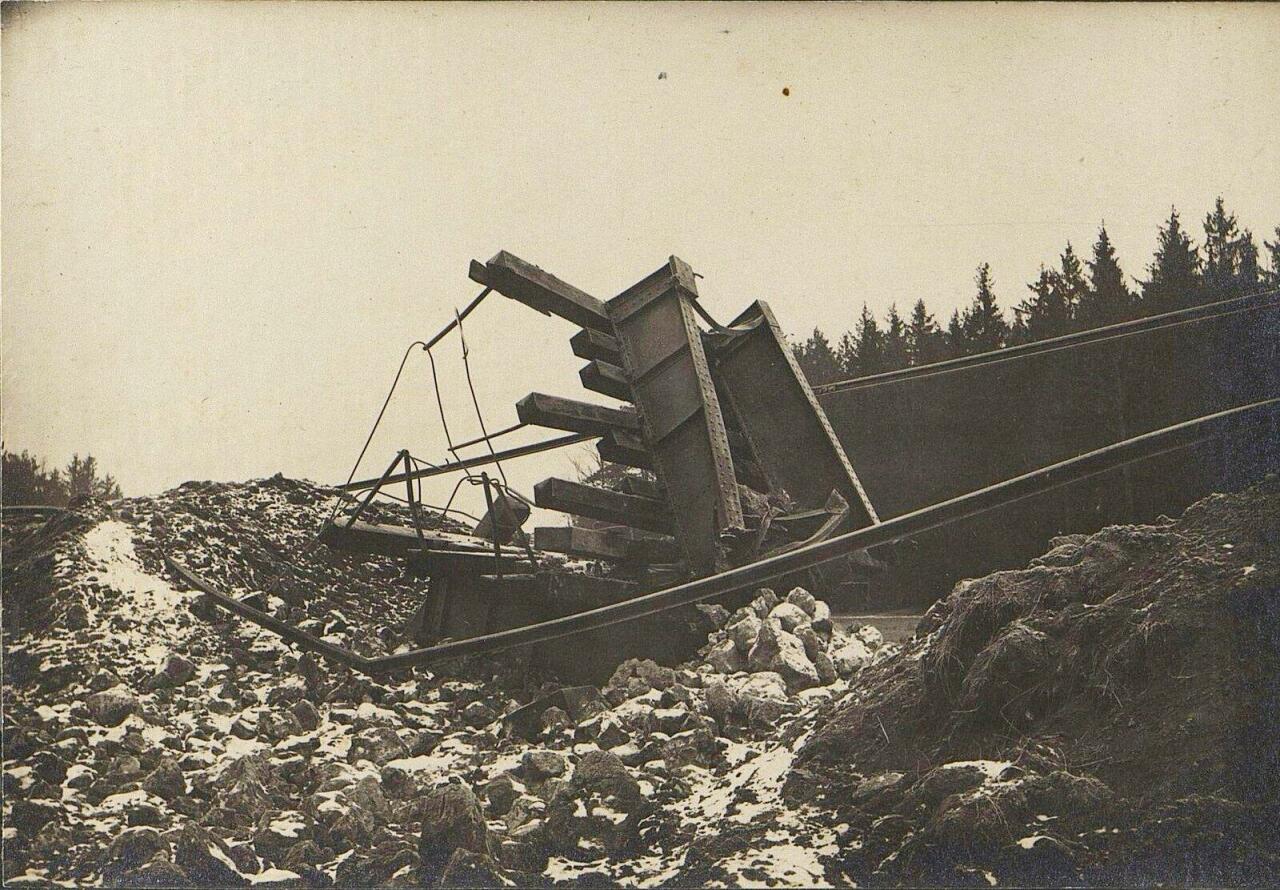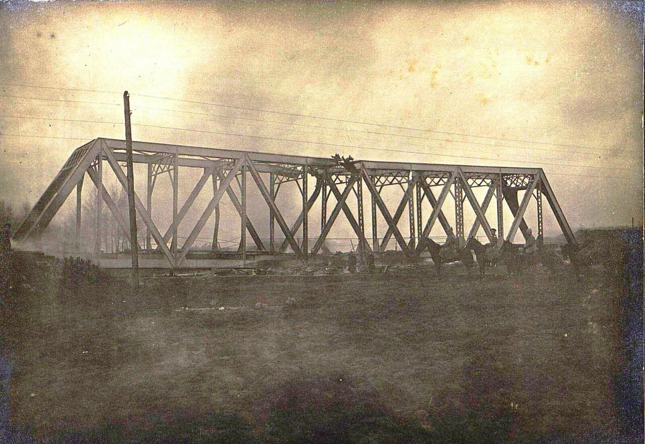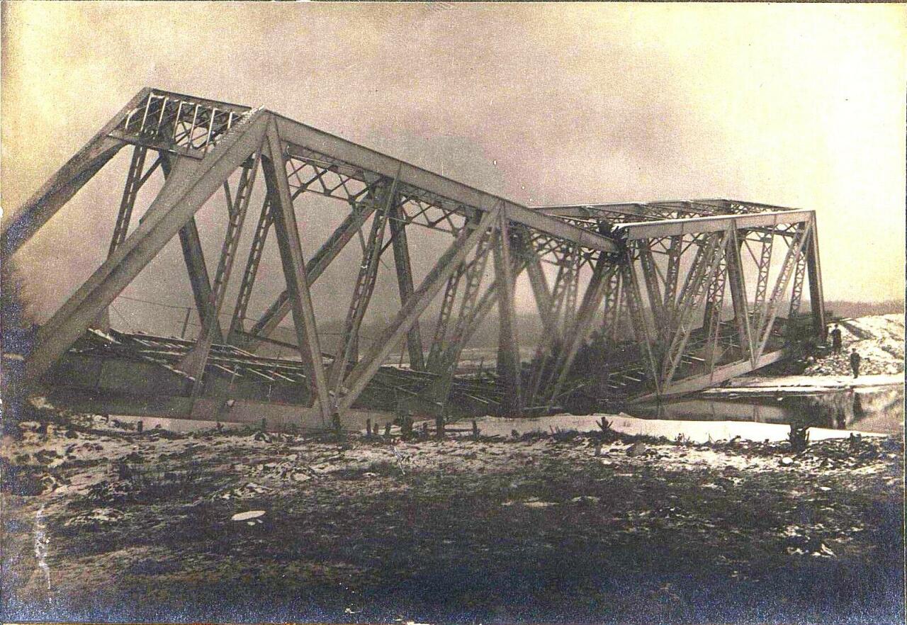 Zniszczony most na 44 wiorście linii (zapewne koło Julianki).
