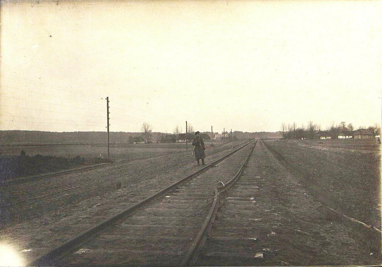 Zniszczone szyny na szlaku koło stacji Włoszczowa, rok 1915.