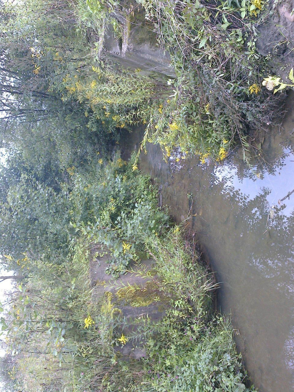 Pozostałości po przepuście wodnym linii 103 w okolicach wsi Dąbrówka.