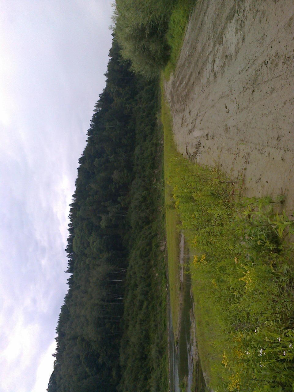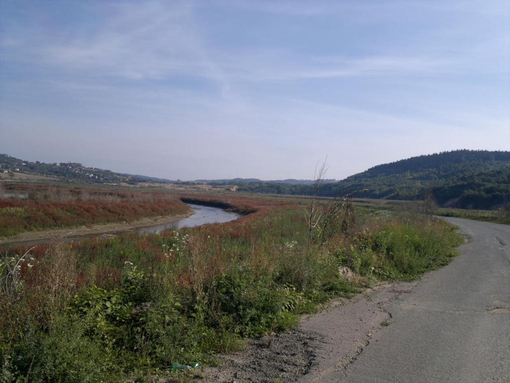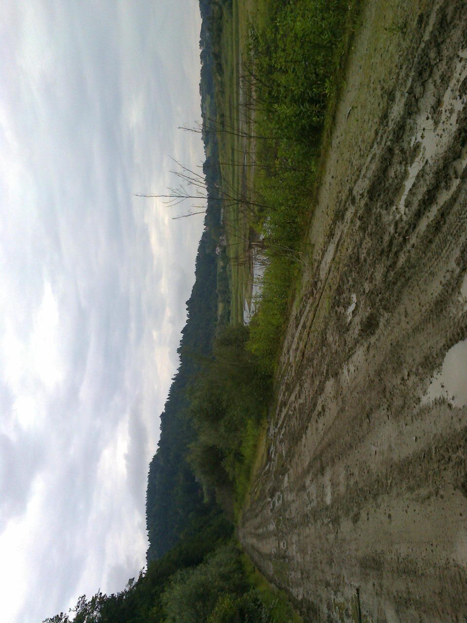 Zwiedzanie dna przyszłego zbiornika Świnna Poręba. Niewiele widać, ale wg map pomiędzy drogą a rzeką równolegle biegła linia kolejowa. Porównałem stare mapy z naniesioną liną Trzebina - Skawce oraz dane z geoportalu. Cały teren przeznaczony jest do zalania.