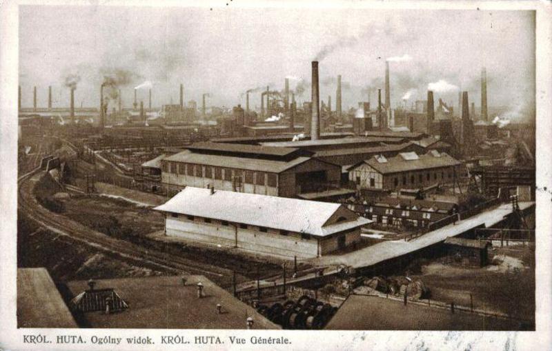 Widok na bocznicę Heinitz-Grube (KWK Rozbark). Szlak widać w dolnym prawym rogu, tory w lewym dolnym kadrze to tory tramwajowe.