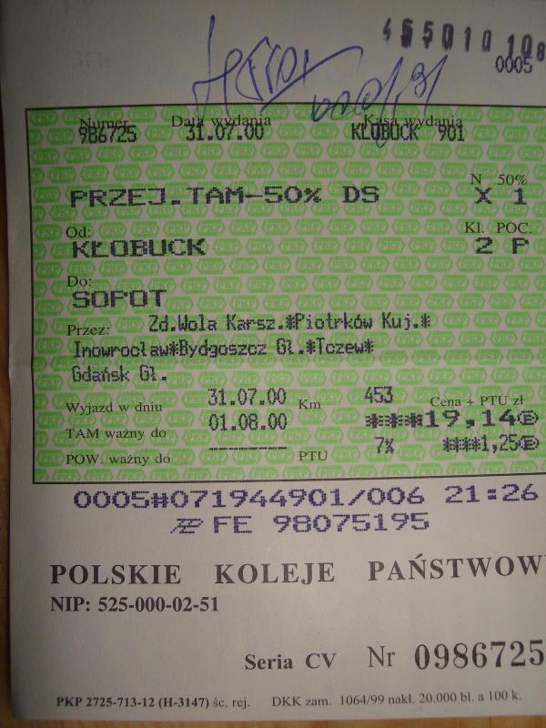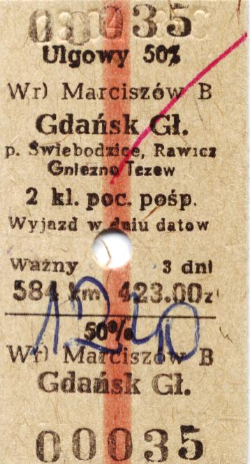 Bilet ulgowy z Marciszowa do Gdańska.