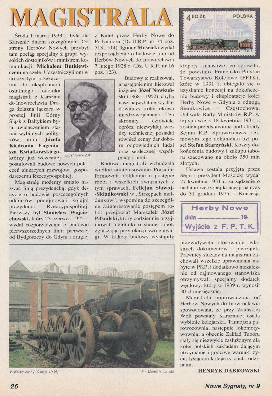 Skan artykułu z Nowych Sygnałów nr 9/98 o Magistrali Węglowej.