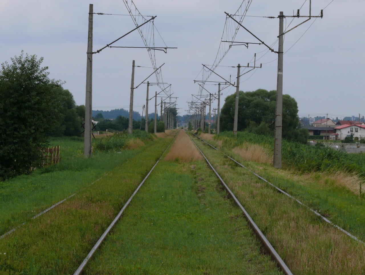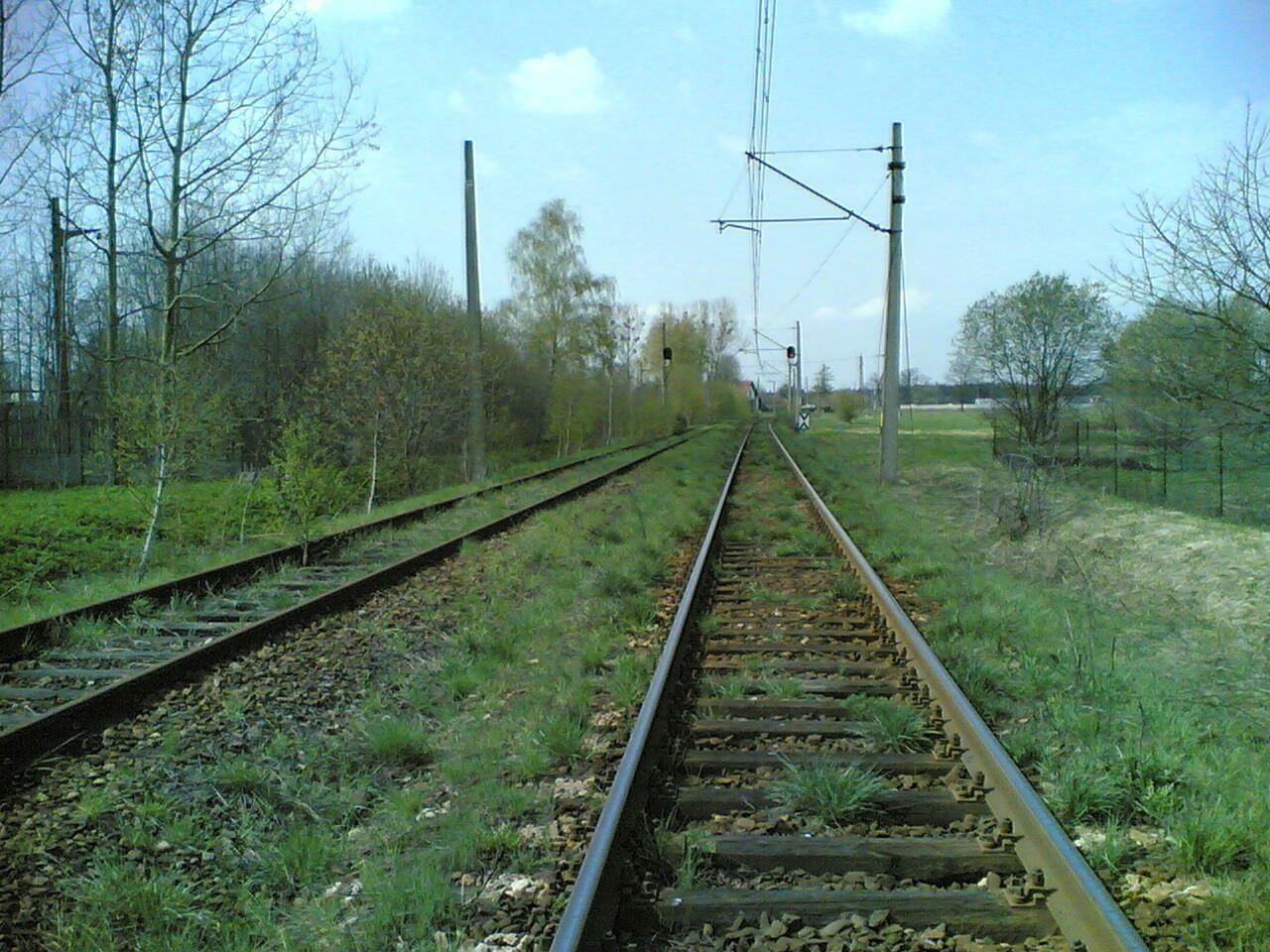 Widok w km 2.4km w kierunku TG Strzybnica. Po prawej widać resztki torowiska wąskotorowego.