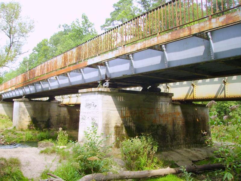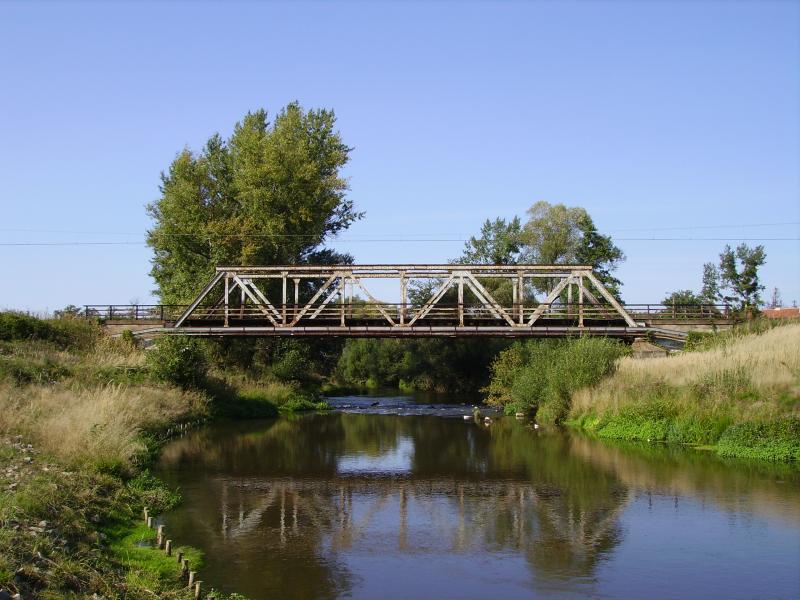 Most na rzece Mała Panew, a raczej dwa mosty,lewy spawany, prawy nitowany.