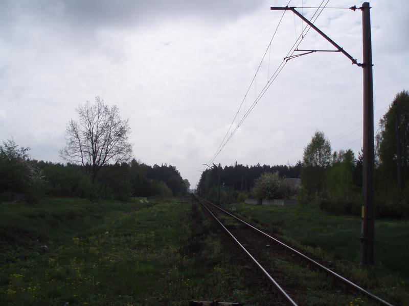 Po lewej tor nr 1 linii Wyczerpy - Chorzew Siemkowice. Po prawej tor nr 2 linii Wyczerpy - Chorzew Siemkowice. Po lewej widoczny budynek mieszkalny i gospodarczy przy ulicy Kresowej. Widok w kierunku początku linii. 1,1 km.