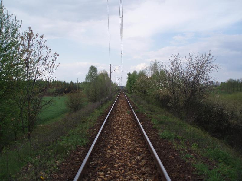 Tor nr 2 linii Wyczerpy - Chorzew Siemkowice. Widok w kierunku Zduńskiej Woli. 1,5 km.