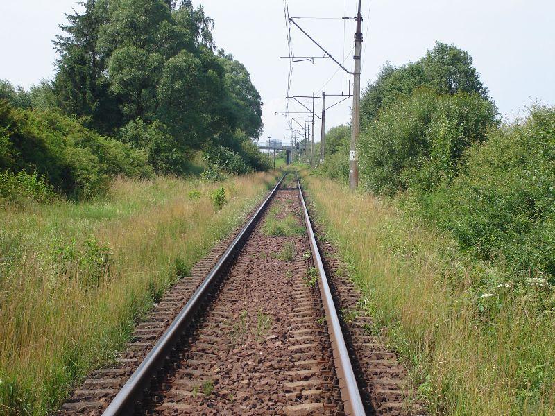 Zdjęcie przedstawia fragment odcinka z Herbów Nowych na północ, w stronę przystanka osobowego Kuleje.