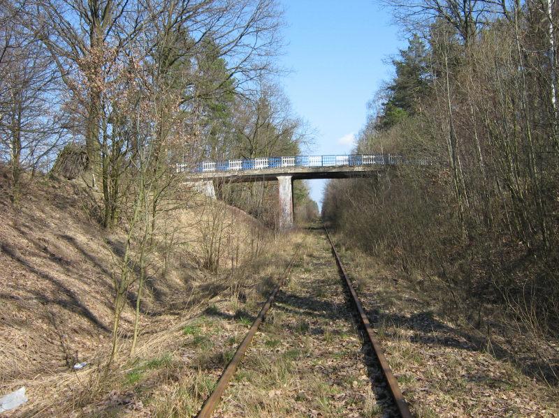 Linia 181 Herby Nowe - Oleśnica, zdjęcie przedstawia fragment odcinka w stronę Herbów Nowych. Nad linią "Żelazny Most" i tor 2 linii 131 (Magistrala Węglowa).