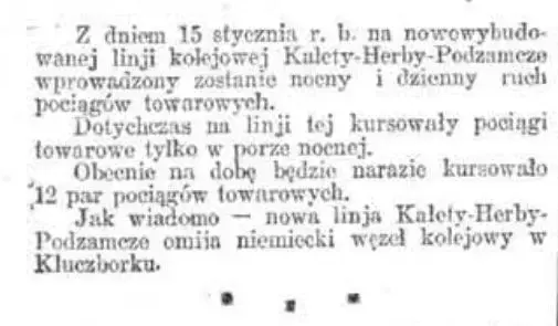 Wycinek z Monitora Polskiego, X/1927 r. mówiący o otwarciu linii dla ruchu dziennego.