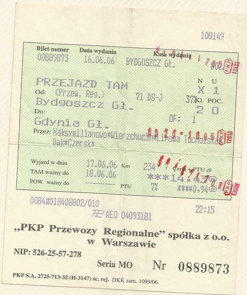 Jest też w tym, jeden bezpośredni z Tucholi (15:10) do Czerska.