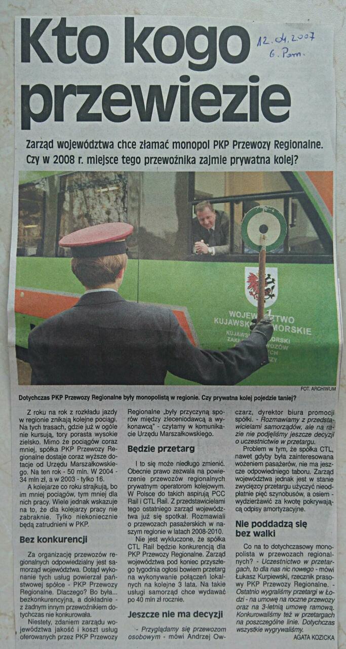 Pragnę zauważyć, ze tak jak piernik z wiatrakiem ma jednak wspólny punkt (jest nim mąka), tak z przytoczoną ofertą nie ma nic wspólnego odcinek Toruń-Sierpc. Skąd w ogóle takie zestawienie?