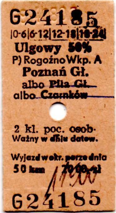 Linię tę do Żnina zamknięto w ubiegłym roku. Do niedawna kursowały tam szynobusy a potem zastępcza komunikacja autobusowa. Ostał mi się jeden bilet blankietowy pisany ręcznie przez konduktora w szynobusie z Barcina do Inowrocławia. Co ciekawe bilet jest na trasie Barcin - Warszawa Centralna więc konduktorowi zajęło 40 minut obliczenie opłaty:)