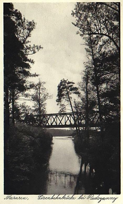 Stara pocztówka. Most kolejowy nad rzeką Krutynią.