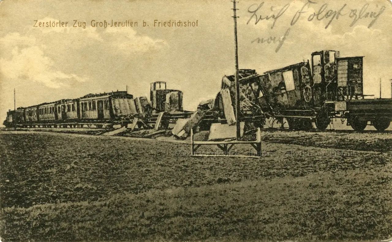 11 listopada 1914 roku patrol kozacki zaatakował pociąg między Jerutami a Olszynami. W jednej z polskich gazet Eugeniusz Buchholz opublikował relację Adama Konrada na temat tego tragicznego w skutkach wydarzenia. Relacja ta jest wyjątkowa, ponieważ została spisana po mazursku. W trakcie opisywanego tu wydarzenia zginęło 15 cywili i 7 rezerwistów. Rannych zostało 46 osób. W okresie powojennym masakrę upamiętniał wykonany z drewna pomnik.