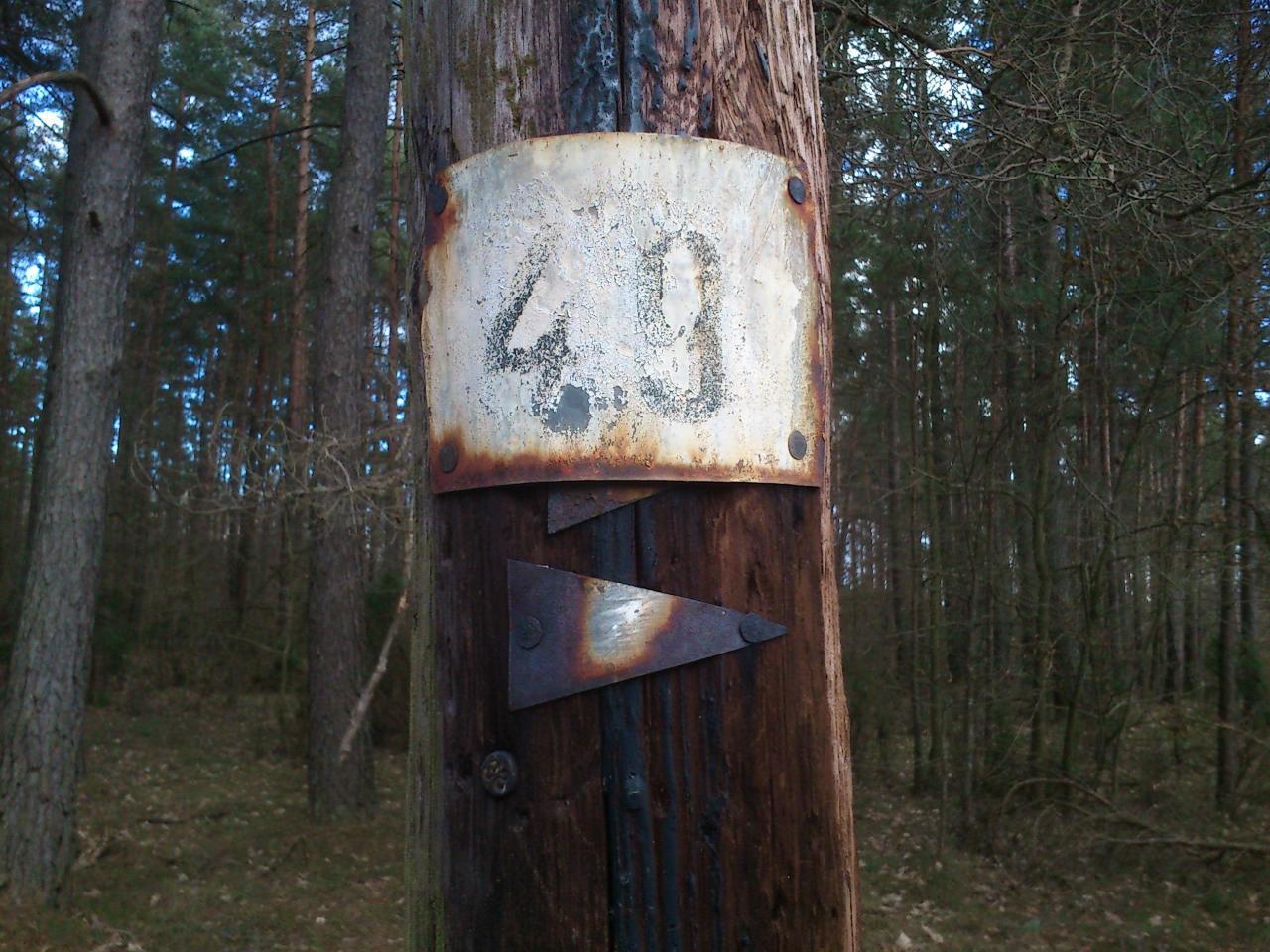 Słupek hektometrowy 3,9(?) km od stacji Szczytno.