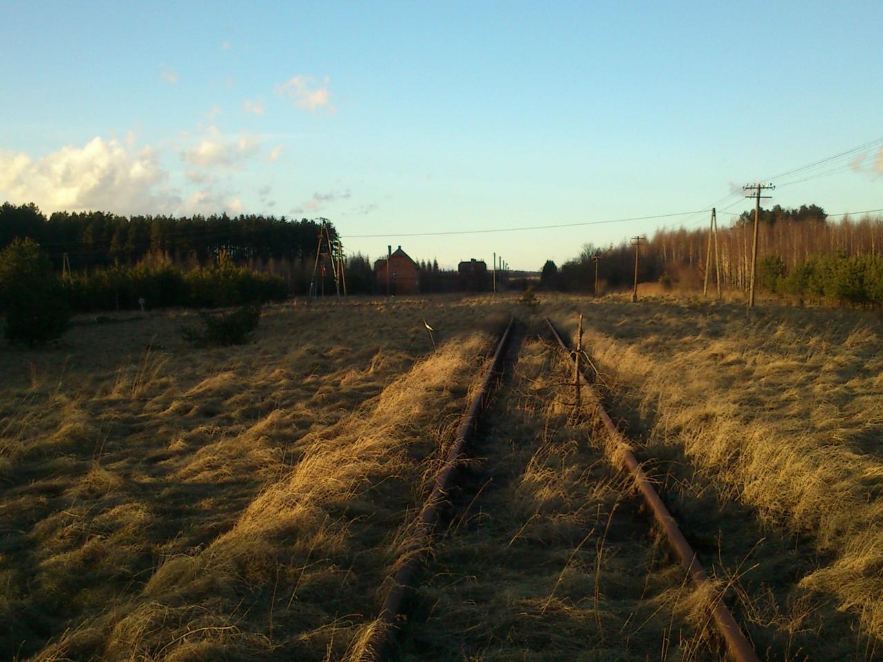 Linia Szczytno - Biskupiec Reszelski na obrzeżach Szczytna. Widok w kierunku Szczytna.