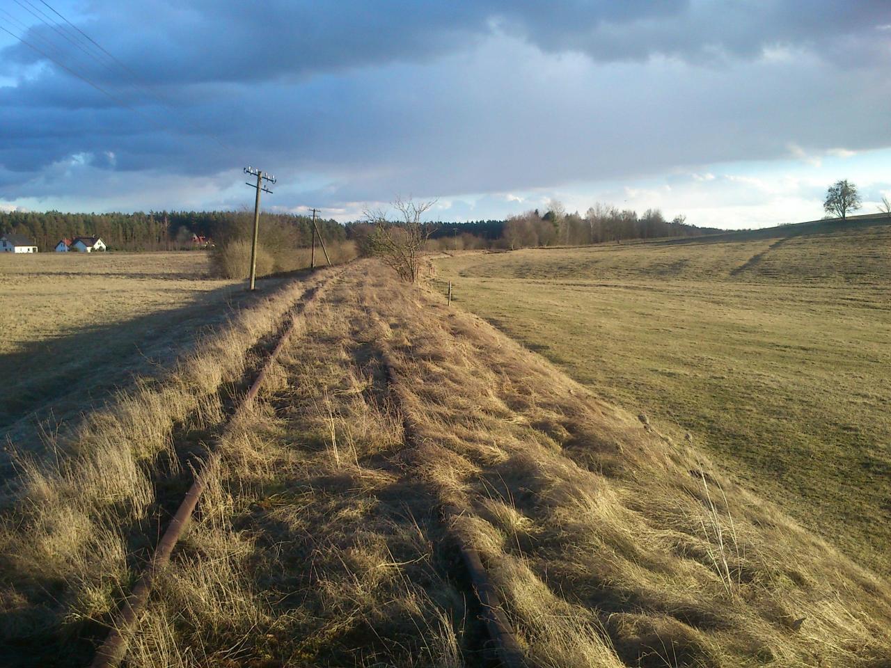 Ścieżka rowerowa prawie ukończona. Asfaltowa trasa kończy się dokładnie przy drodze S16. Tuż za trasą S16 skręca w lewo i rozstaje się z byłą linią kolejową. Potem jeszcze nie asfaltowa, ale już z krawężnikami i tłuczniem biegnie wzdłuż S16 aż do wjazdu do Biskupca.