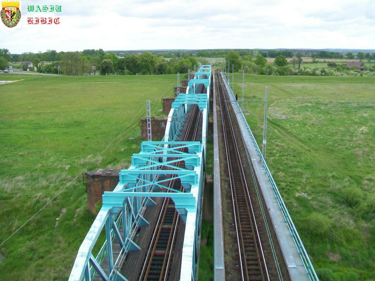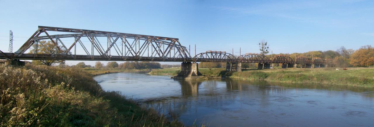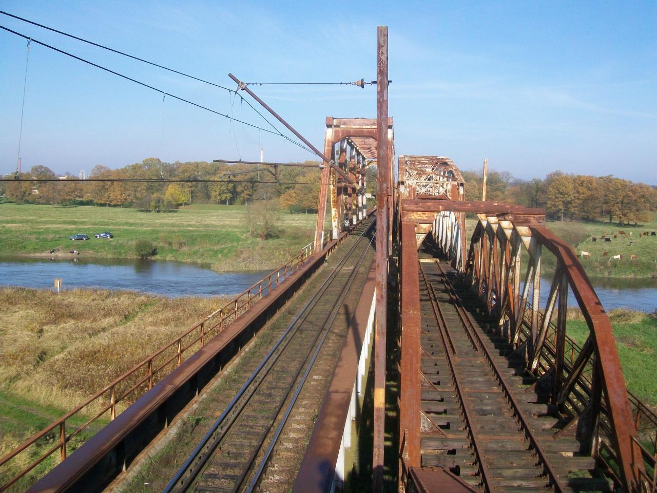 "Może właśnie tego chce od ciebie Bóg - abyś szukał do niego ciągle nowych dróg." Widok w kierunku północno-wschodnim (Wołów/Wrocław, kiedyś Krzelów/Rawicz) na most kolejowy nad Odrą pod Ścinawą.