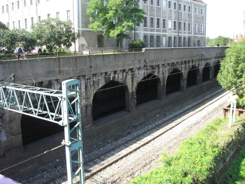 Arkady w Głogowie, czyli estakada w ciągu ul. Nadbrzeżnej nad torem nr 1. Widok w kierunku stacji Głogów (zachód).