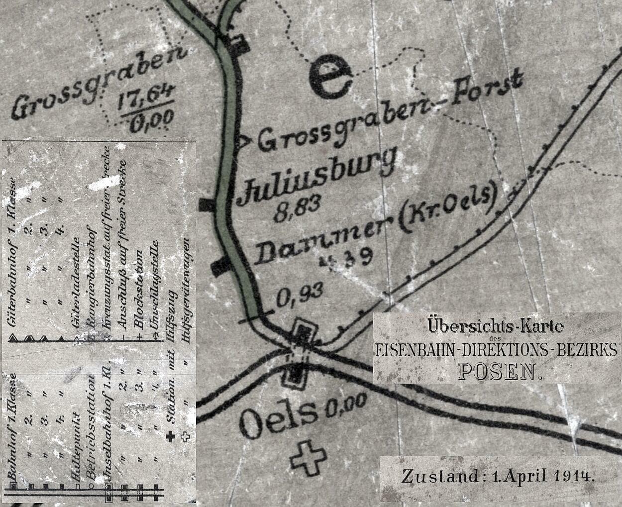 Odcinek Oleśnica - Grabowno Wielkie, w 1914 wraz z całą linią od km 0.93 należący do dyrekcji poznańskiej, w tym enigmatyczna ładownia (umownie i skrótowo: 'Grabowno Las').
